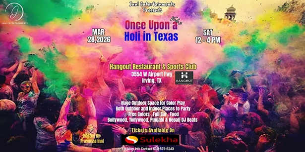 Join us for an unforgettable celebration of colors, culture, and camaraderie at "Once Upon A Holi in Texas Vol:3" on the 28th of March, 2026. This vibrant festival will transport you to the heart of India, with a delightful mix of Hindi, Telugu, Tamil, and Malayalam music and dance performances. Get ready for a day filled with Bollywood and Fusion rhythms, mouthwatering food and drink, and endless color fights that will leave you covered from head to toe in beautiful, vibrant hues. Don't miss this unique opportunity to experience the joy and excitement of Holi right here in Texas!