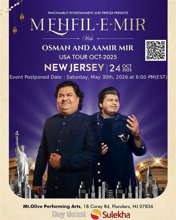 Mark your calendar for 30th May 2026 as the Mount Olive High School Performing Arts Center, New Jersey, is all set to welcome music lovers for an enchanting evening with Osmin Mir. This is your chance to be a part of a mesmerizing live concert where Hindi and Gujarati music will reverberate in every corner, creating a surreal Bollywood atmosphere. Grab your tickets now and immerse yourself in the captivating beats of Osmin Mir's live performance.