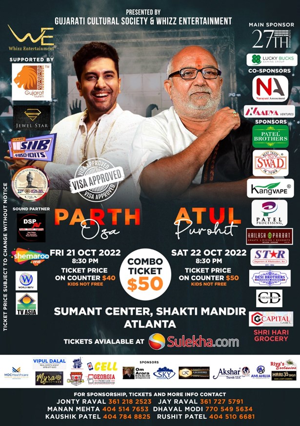 Parth Oza 21st Oct/ Atul Purohit 22nd Oct At Gujarat Garba Mohatsav
