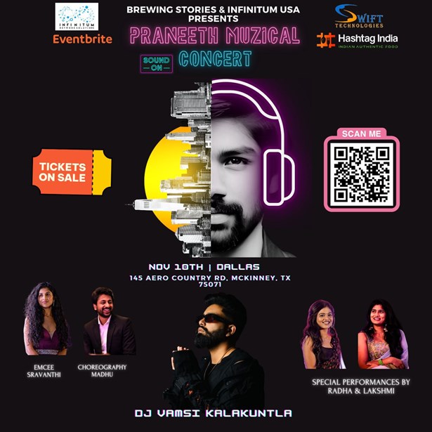 Come join us for an unforgettable evening of music and entertainment at 145 Aero Country Road, McKinney, TX, USA. Get ready to be mesmerized by the soulful melodies and energetic performances by Praneeth and his talented band. This in-person event promises to be a night filled with joy, laughter, and incredible music. Whether you're a fan of pop, rock, or classical tunes, Praneeth's diverse repertoire will surely captivate your heart. So mark your calendars and get ready to groove to the beats of Praneeth's music at this must-attend musical extravaganza!