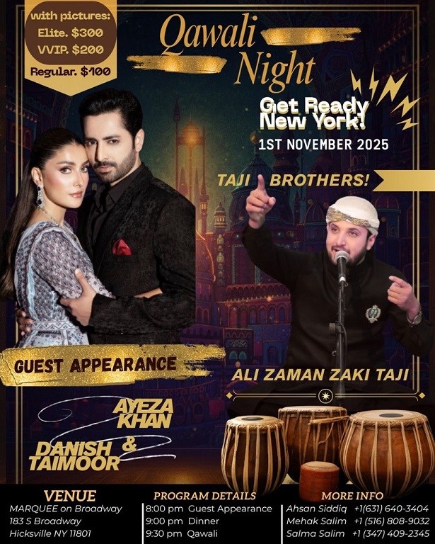 Get ready for a soul-stirring evening of music, devotion, and cultural elegance! Join us for an unforgettable Qawali Night with the sensational Ali Zaman Zaki Taji, as he brings his mesmerizing voice and Sufi magic to the stage.