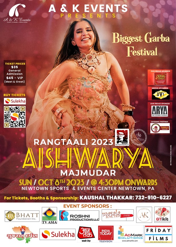 Aishwarya Majmudar with Rangtaali 2023 Biggest Dandiya Festival, Presented by A & K Events - Kaushal Thakkar