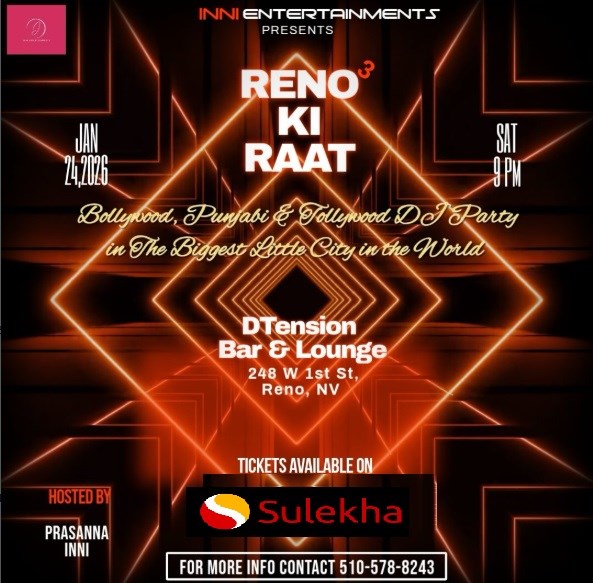 Experience a night of cultural fusion at "Reno Ki Raat 3" taking place on the 24th of January, 2026. This much-anticipated event is the perfect blend of Hindi, Telugu, Tamil influences, creating a multilingual atmosphere that will captivate your senses. From Bollywood dance performances to a night party full of rhythm and energy, Reno Ki Raat 3 is the place to be. And of course, delicious food and drinks will be available to ensure a complete and satisfying experience.