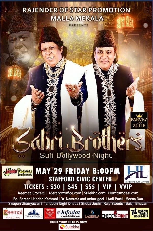 Star Promotions Inc proudly presents the "Sahri Brothers Sufi Bollywood Night" on the 29th of May, 2026. Immerse yourself in an evening of soulful Sufi and Bollywood fusion, brought to life by the timeless melodies in Hindi, Urdu, and English. This multilingual concert promises to be an unforgettable experience, blending the enchanting rhythms of Sufi music with the vibrant energy of Bollywood.