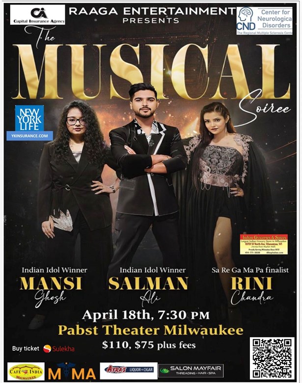 Immerse yourself in the heart-throbbing melodies of Bollywood with Salman Ali, Manasi Ghosh, and Rini Chandra live in concert! This music extravaganza, organized by Raaga Entertainment LLC, is scheduled to take place on the 18th of April, 2026. Join us at the Pabst Theater in Milwaukee for an unforgettable evening of enchanting tunes and captivating performances. This concert is the perfect event for music enthusiasts and Bollywood lovers alike.