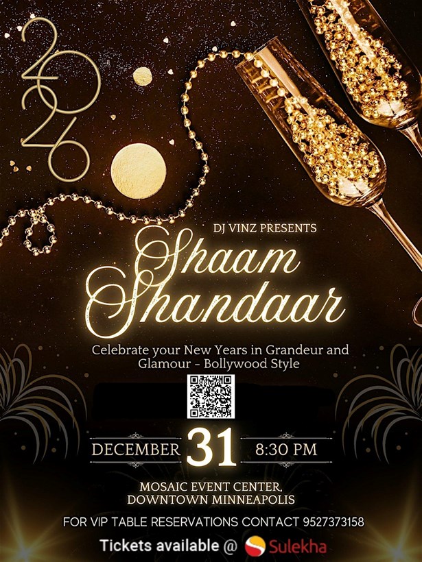 Mark your calendars for an unforgettable evening on the 31st of December, 2025, as Dj Vinz brings you the Shaam Shandaar Again event in Minneapolis. Join us for a night filled with melodious Hindi and multilingual music, stupendous dance performances, and the infectious energy of Bollywood. This New Year's Eve party is sure to be the talk of the town, so don't miss out on the fun.