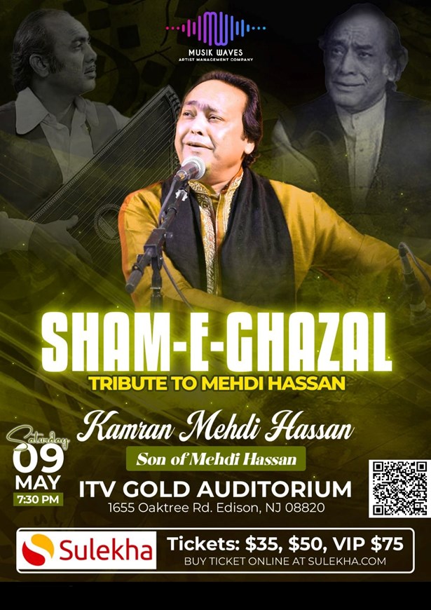 Immerse yourself in the enchanting realm of Urdu music at the "Sham-E-Ghazal Tribute to Mehdi Hassan" scheduled on the 9th of May, 2026. This live concert promises a night of soul-stirring music and singing, presented by the distinguished artist Kamran Mehdi Hassan. The event, organized by Azim NJ Musik Waves, is a tribute to the legendary Ghazal maestro Mehdi Hassan, offering a unique, melodic blend of classical and semi-classical tunes.