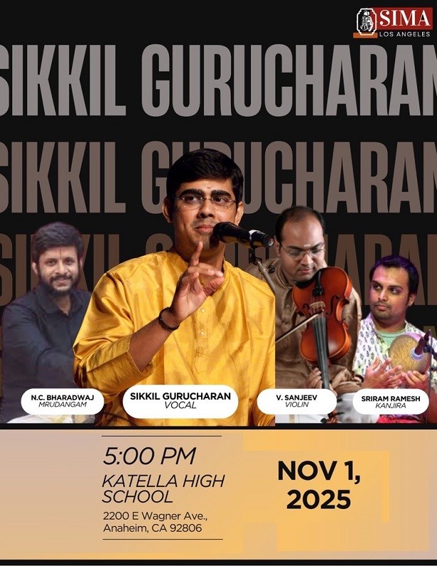 Sikkil Gurucharan (vocal), V. Sanjeev (violin), N.C. Bharadwaj (mrudangam), Sriram Ramesh (kanjira)