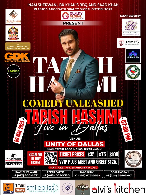 Get ready, Dallas! The king of wit and laughter, Tabish Hashmi, is bringing his signature humor and unfiltered comedy to Texas! Known for his viral stand-up, sharp punchlines, and hit YouTube show "Hasna Mana Hai," Tabish Hashmi guarantees an evening packed with non-stop entertainment and laughter.