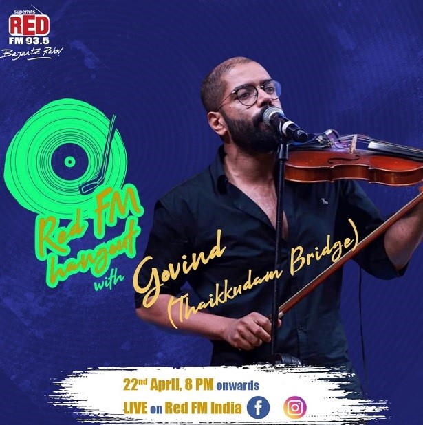 Event Details The multi-talented Govind Vasantha from the epic rock band, Thaikkudam Bridge, is all set to enliven your Wednesday evening. Catch the artist go live with Red FM Hangout. Time Zone
