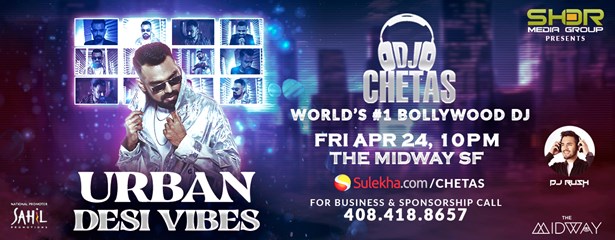 Get ready for an unforgettable night at "Urban Desi Vibes w/DJ Chetas LIVE: Worlds #1 Bollywood DJ Live In Bay Area" on the 24th of April, 2026. This one-of-a-kind event will immerse you in a unique blend of Multilingual songs, Live Concert energy, and Night Party ambiance. Come and groove to the best of Bollywood music mixed by the world-renowned DJ Chetas.