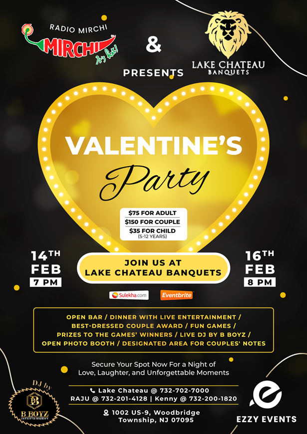Celebrate the season of love with an enchanting Valentine's Party at Lake Chateau Banquets! Join us for a night filled with romance, laughter, and unforgettable moments.