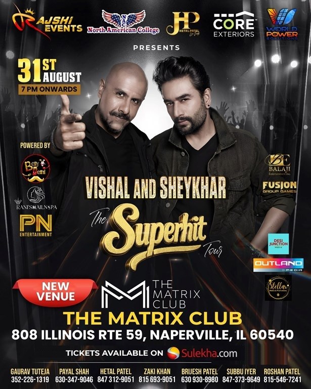 Vishal & Sheykhar bring the heat to Schaumburg, Aug 31! Book your tickets now for the Superhit Tour 2025!